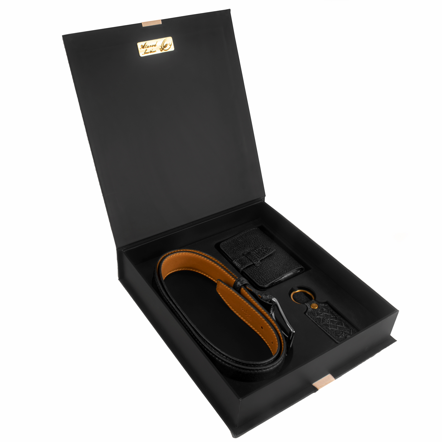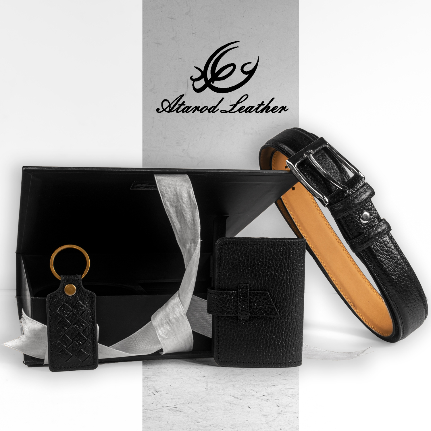 - جزئیاتبسته بندی اختصاصی و لوکس برند ثبت شده چرم عطارد ست 3 تکه شامل کمربند ، جاکارتی و جاکلیدی بافت تمام چرم طبیعی گاوی مناسب برای هدیه